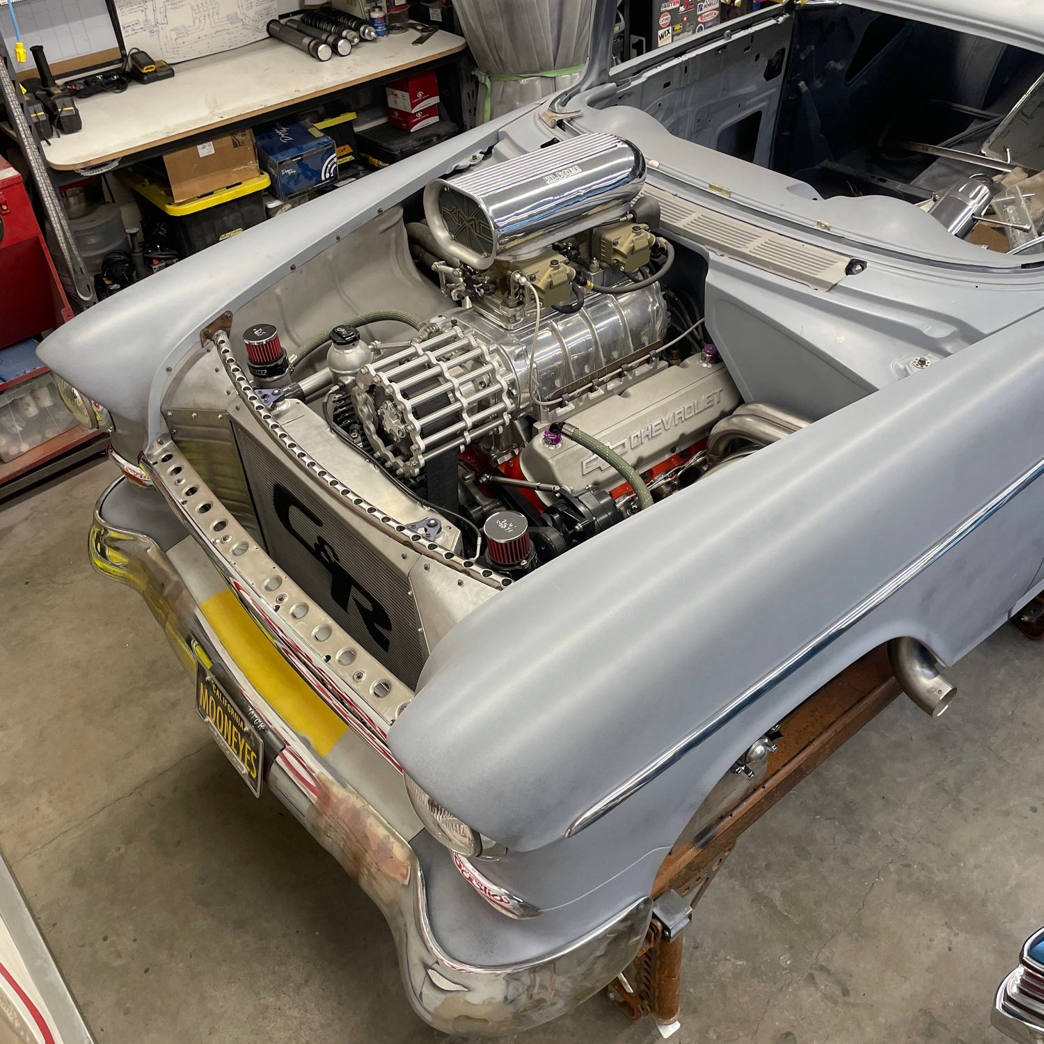 Take a Closer LookAn exercise in nostalgia through the eyes of a millennial. This 55 Belair merges old school cool with modern go-fast parts. Blown Big Block, Holley EFI, 18" wide rear meats, airjacks?!? Yeah, I'd click that button too.