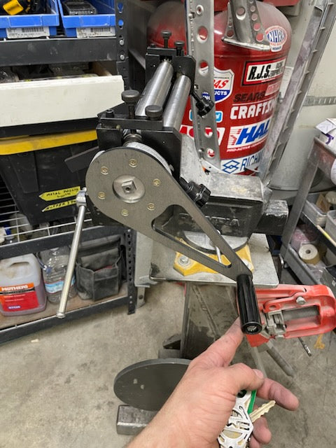 Let's face it, you're not strictly adhearing to the the material max thickness specs... me either! So you might as well upgrade your economical Woodward #WFSR12 slip roller with a beefy oversized arm so you can much more easily feed the material and crank it through.