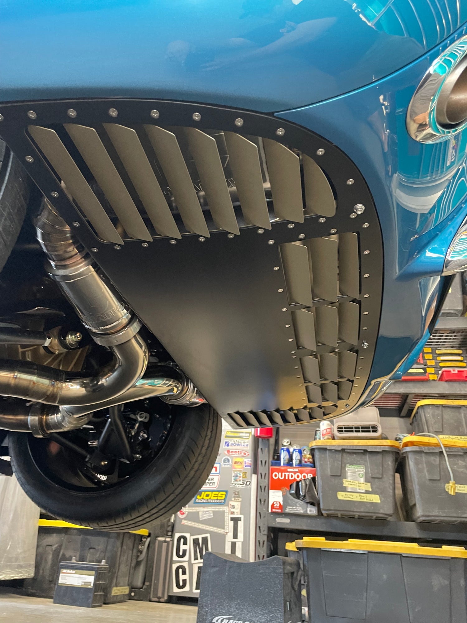 This kit includes (2x) titanium vents and (2x) steel drill/cut jigs for easy integration of these lightweight functional vents into your lower closeout panel or custom application. These vents will contour to lightly shaped panels such as pictured finish installed on the 66 Corvette project.