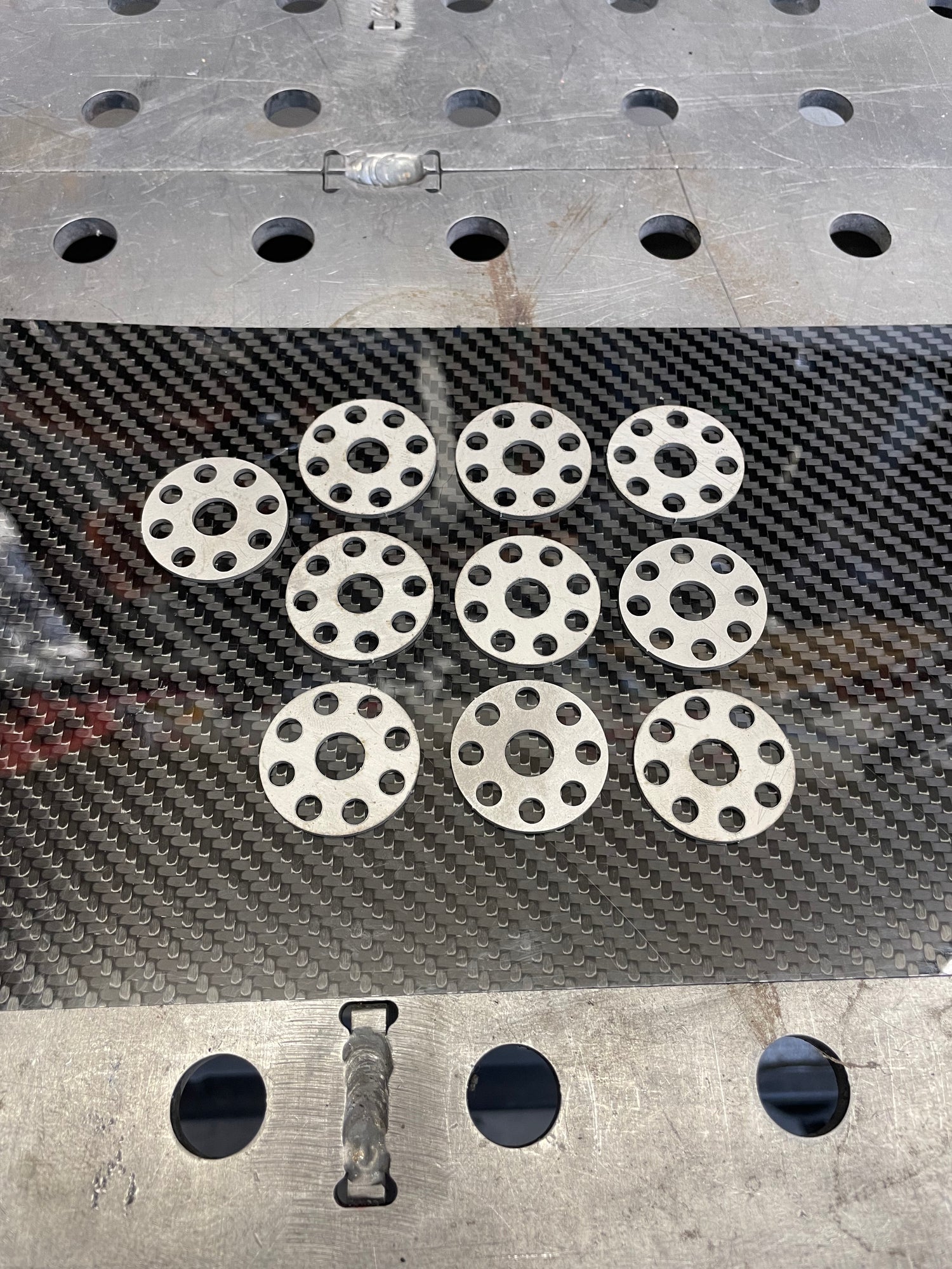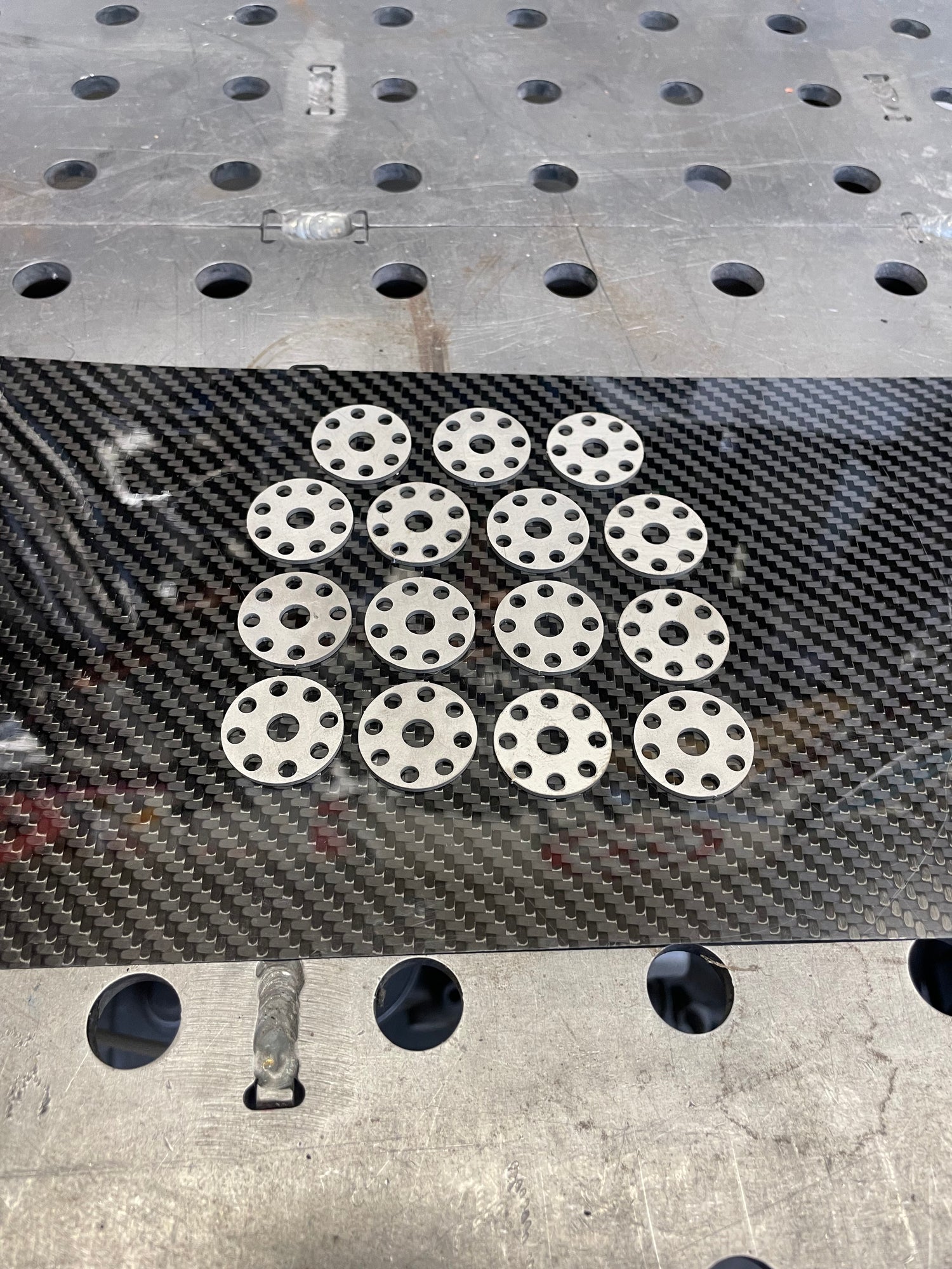 construction. They are perfect for sprucing up large adjustment holes found on body panels as well as retaining bushings, and incorporating an aerospace material into your build.
