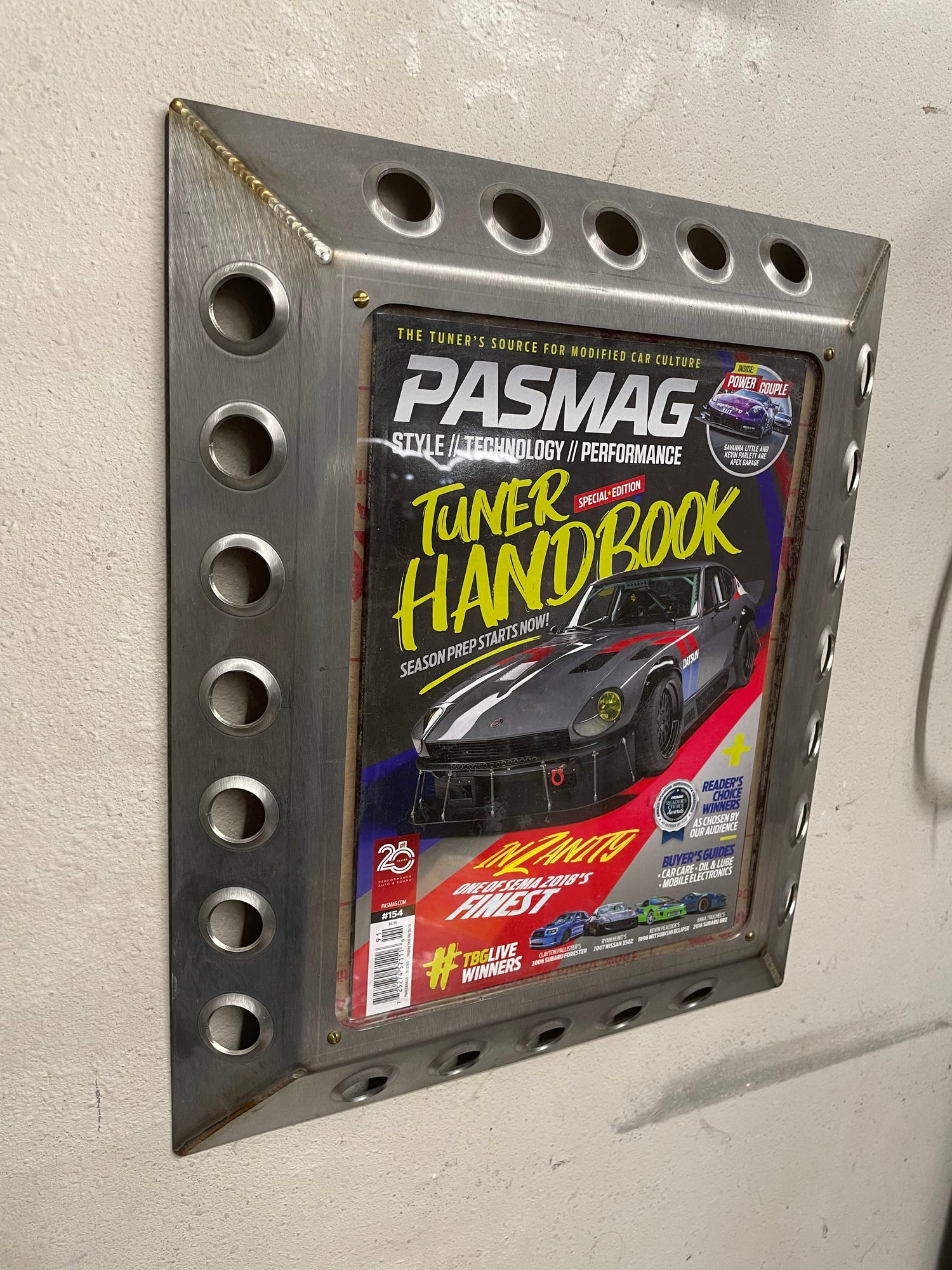 A stylish way to display what is important to you! This Stainless flared hole picture frame perfectly displays a viewing area of 11" x 8.5"(Standard printer paper/ magazine size) with mounting straps to sit both horizontally or vertically included.